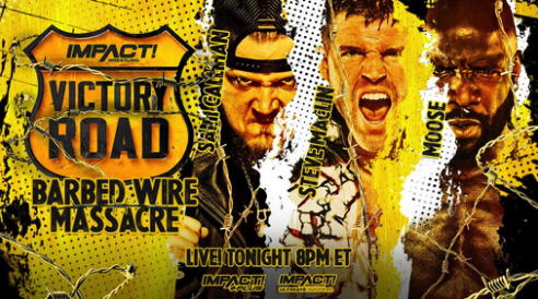 Tonight, “Death Machine” Sami Callihan, Moose and Steve Maclin battle each other in Barbed Wire Massacre at Victory Road! (Photo Credit: IMPACT! Wrestling) Barbed Wire Massacre – “Death Machine” Sami Callihan V/S Moose V/S Steve Maclin