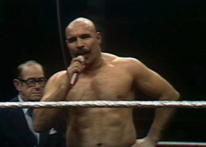 It’s now time for our first match of the evening. The following match is scheduled for one fall with a 10-minute time limit. Introducing first, from Pittsburgh, Pennsylvania and weighing in at 240 pounds – LARRY ZBYSZKO! And his opponent hails from Indianapolis, Indiana and weighs in at 275 – JOJO ANDREWS! The bell rings to officially begin this match. During the match, McMahon asks Sammartino if he was able to figure out why Zbyszko did not grant him an interview last week? “The Living Legend” states he has had trouble sleeping because it bothered him so much. He tried to find him after the show ended but Zbyszko had already left the arena. He said Larry is always on the go so he’s always busy and must not have had time to return Bruno’s call. Vince says that whether Larry wins or loses, he hopes to conduct an interview with him after the match to find out why he declined to be interviewed by Bruno. The match ends when Andrews submits to the Boston Crab.