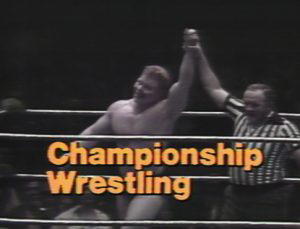 Our next match is already in progress when WWF Championship Wrestling returns. It’s a singles match between RON LEE and RENE GOULET. This match ends after Goulet nails Lee with an elbow drop.