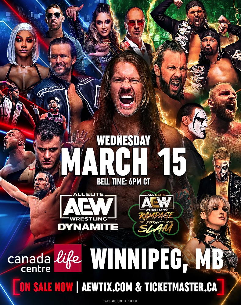 AEW DYNAMITE AND RAMPAGE SHOWS AT CANADA LIFE CENTRE IN WINNIPEG RESCHEDULED FOR WEDNESDAY MARCH 15