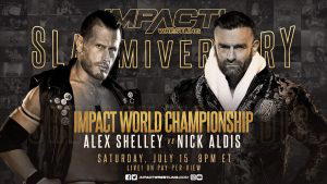 So the main event is set: IMPACT World Champion: Alex Shelley will defend the IMPACT World Championship against “The National Treasure” Nick Aldis at IMPACT! Wrestling Slammiversary on Saturday, July 15, 2023 at the St. Clair College Sportsplex in Windsor, Ontario, Canada only on pay-per-view and FITE. Tickets are available now at Eventbrite.ca.