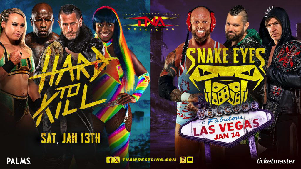 The TNA action kicks off on Saturday night, January 13, with the Hard To Kill pay-per-view, which will air live around the world from the Palms Casino Resort. Then, on Sunday night, January 14, the in-ring action continues at The Palms, when the television trucks of iMPACT! on AXS TV roll in for Snake Eyes.
