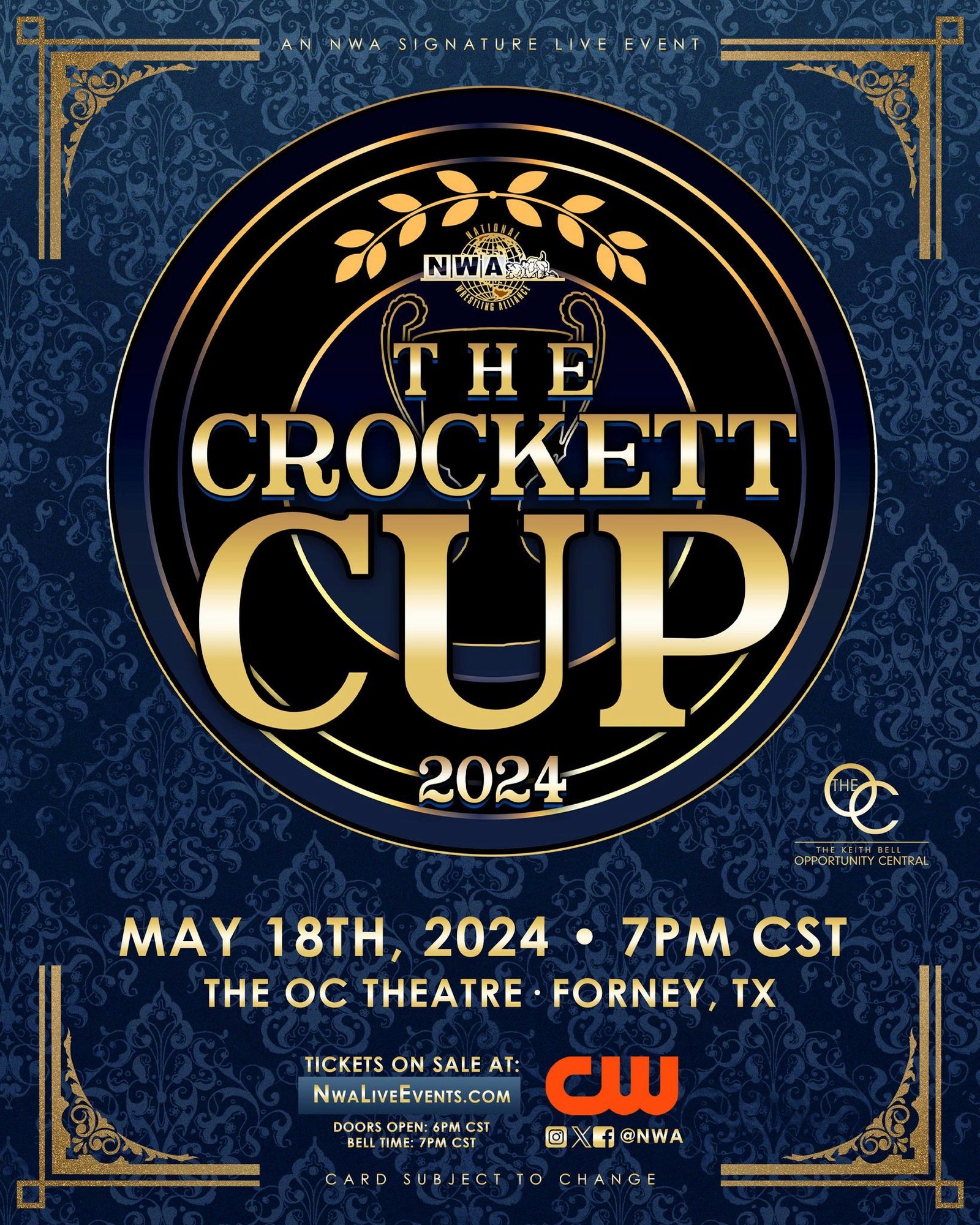 The National Wrestling Alliance (NWA) has announced that The Crockett Cup will take place on May 18, 2024 and will begin at 7:00 P.M. It will take place at The OC Theatre in Forney, Texas. Tickets are now available at NWALiveEvents.com.