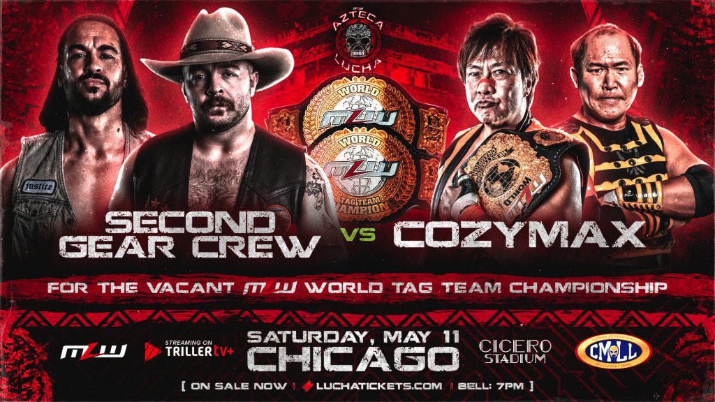 Chicago, IL – Major League Wrestling (“MLW”) today CozyMAX (Satoshi Kojima and Okumura) vs. Second Gear Crew for the vacant MLW World Tag Team Championship at AZTECA LUCHA, live on TrillerTV+ from Cicero Stadium in Chicago on Saturday, May 11.