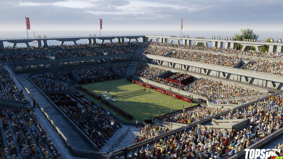The Gucci-themed G-Court, a new grass court based in Italy, created in collaboration with Gucci, and featuring Gucci branding, is also available today in Exhibition mode as well as in World Tour for a limited-time through the Gucci Tennis Cup.
