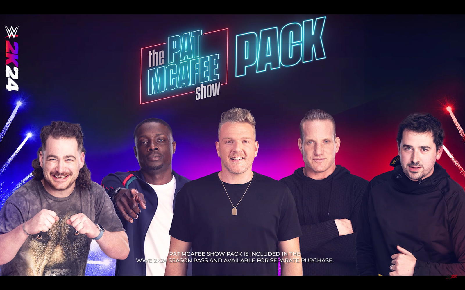 July 31, 2024 PAT MCAFEE AND HIS DAWGS STEP INTO THE RING IN THE WWE® 2K24 PAT MCAFEE SHOW PACK Third DLC pack features popular sports talk show cast bringing gridiron greatness to the squared circle Set ’em up and knock ’em DAHN! The WWE® 2K24 Pat McAfee Show Pack*…