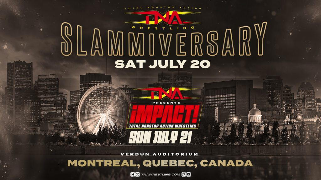 Slammiversary is the Saturday night showcase event on July 20th at Verdun Auditorium, but that’s just part of the TNA excitement rolling through Montreal, Quebec, Canada. Here’s the schedule: