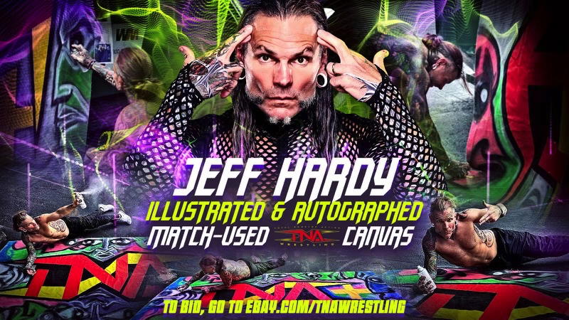 Loyal fans of Jeff Hardy will need to check out a portion of a match-used mat featuring the TNA logo that Jeff illustrated. It is now available for auction on eBay.