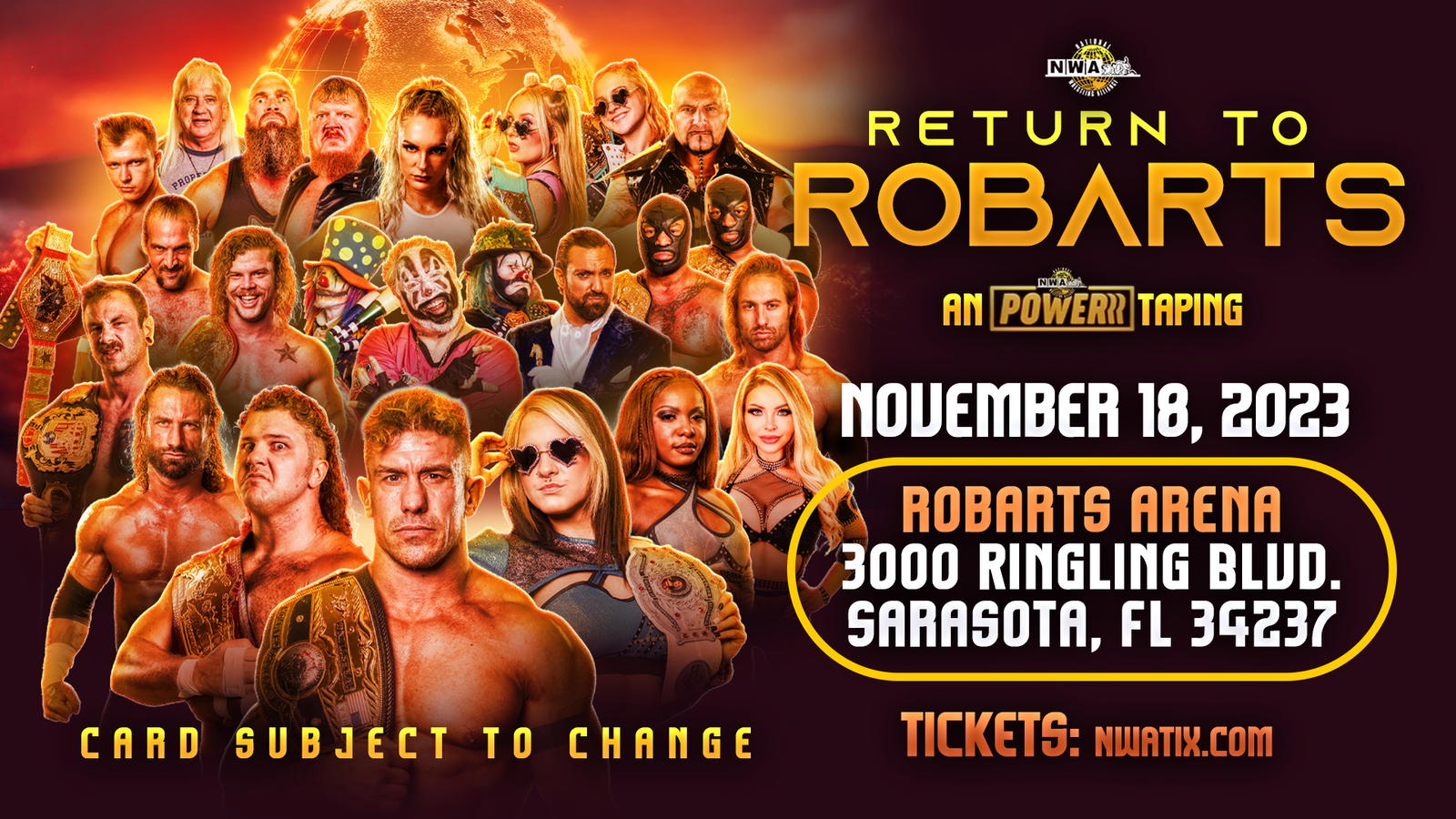 NATIONAL WRESTLING ALLIANCE MAKES TRIUMPHANT RETURN TO HISTORIC ROBARTS ARENA FOR NWA POWERRR TV TAPING; CELEBRATING THE GLORIOUS PAST AND SHAPING THE FUTURE OF PROFESSIONAL WRESTLING FOR IMMEDIATE RELEASE Contact: Marc Kruskol Email: marc@mjkpr.com Sarasota, FL – Sept. 28, 2023 – The National Wrestling Alliance (NWA) is set to make…